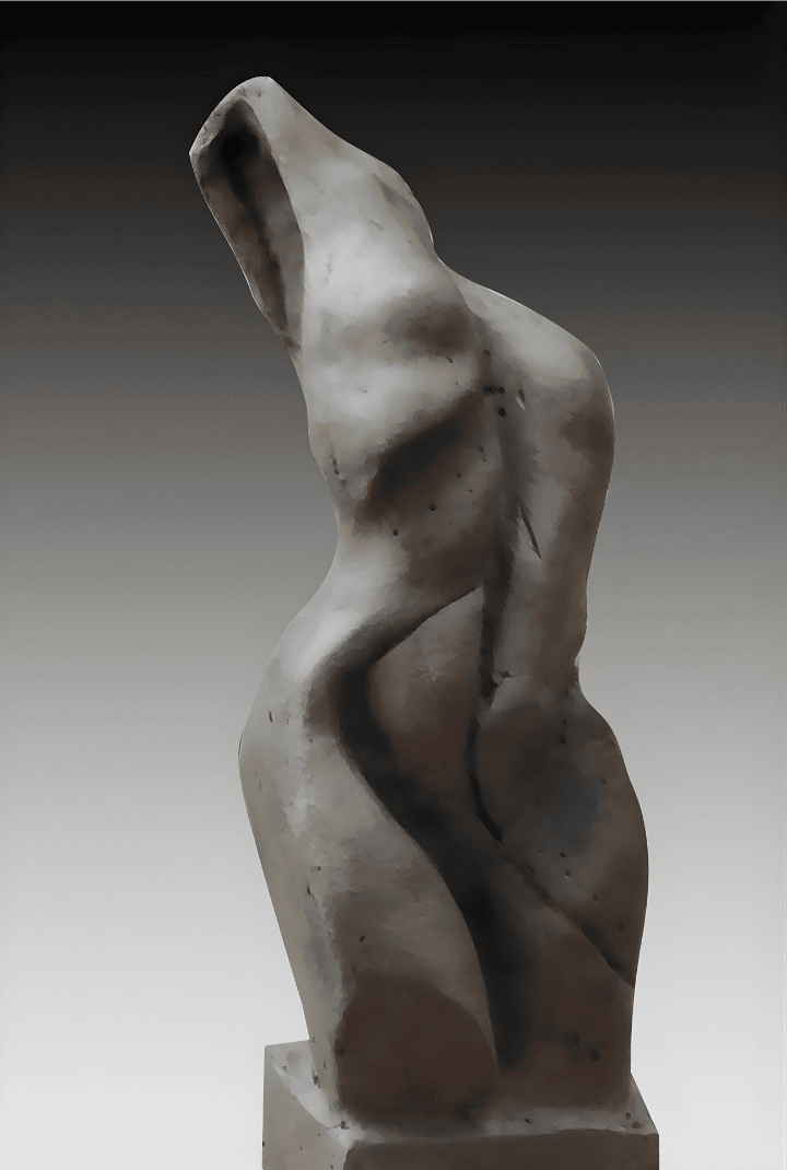 Estas escultura representa la cúspide de la abstracción figurativa. Es un estudio del movimiento congelado, donde las líneas fluyen sin interrupción para sugerir la anatomía humana sin restringirse a ella. La característica apertura superior transforma el vacío en un elemento escultórico que permite que la obra respire y se integre visualmente con su entorno.